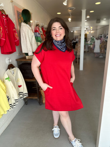 Slip into effortless style with this Plus Size Go-Anywhere Dress in vibrant red. The comfortable mock neck and short sleeves offer a polished look ...