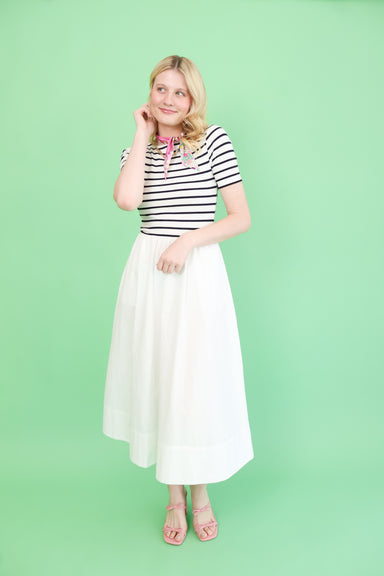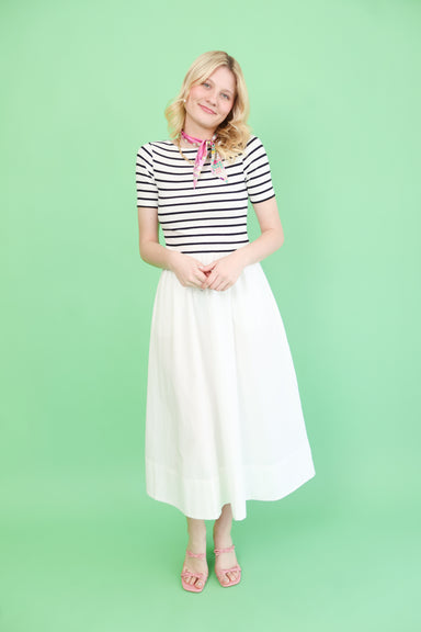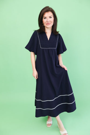 Crisp white dress with charming button details and a nautical-inspired aesthetic. Perfect for layering over basics or wearing solo, this versatile ...