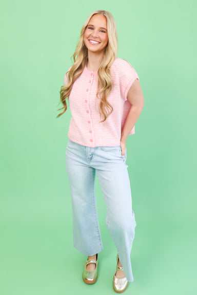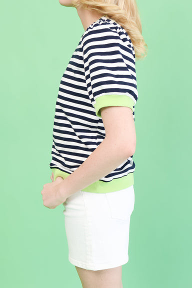 Effortless style meets comfort in this charming striped cardigan. The short sleeves make it perfect for layering over your favorite tees or dresses...