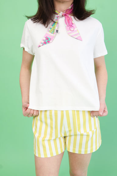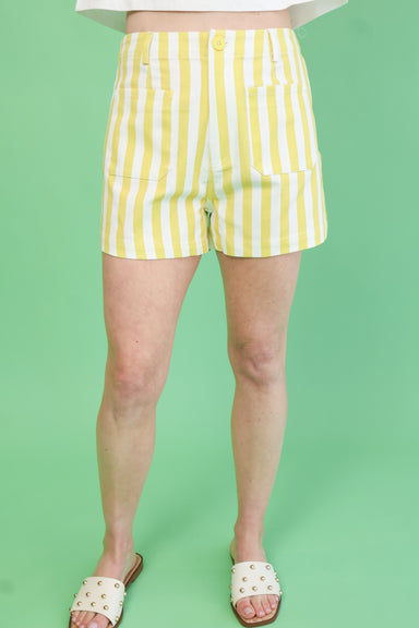 Sunshine Stripe Shorts bring effortless style to your everyday wardrobe. Featuring a charming vertical stripe pattern, these shorts offer a cute, f...