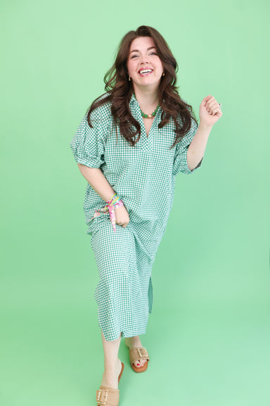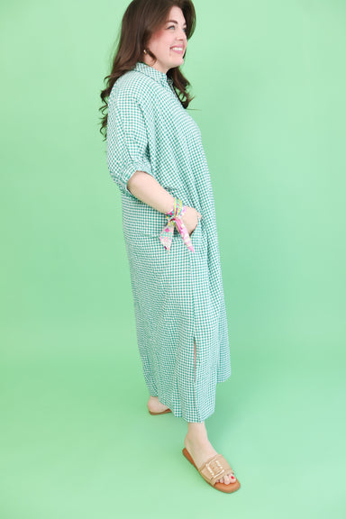 Effortless charm meets everyday comfort in this plus-size gingham dress. The classic green and white pattern brings a fresh, timeless appeal that t...