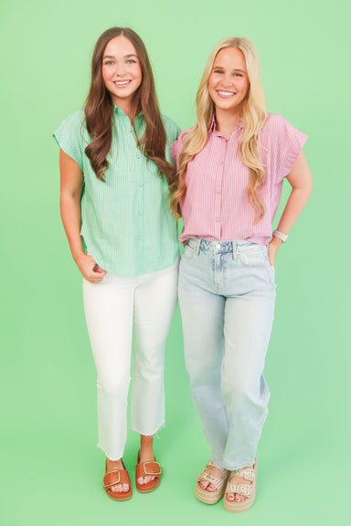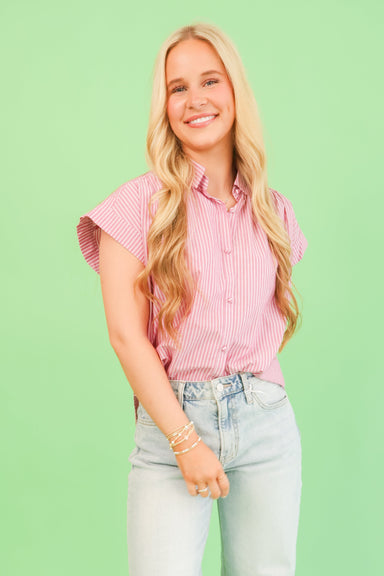 Effortless style meets everyday comfort in this casual stripe top. Featuring a classic button front and short sleeves, it's the perfect lightweight...