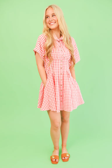 Crisp gingham print in a flattering mini silhouette. Short sleeves and button-front closure for easy styling. Perfect for casual days or dressed-up...