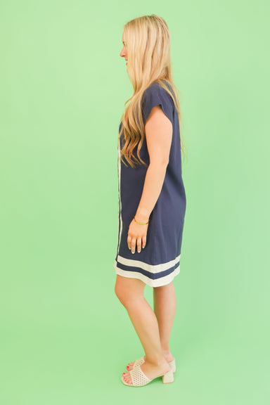 The Hampton Line Dress embodies understated elegance with its clean silhouette and sophisticated navy palette. Crafted for those who appreciate tim...