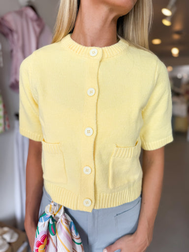 A wardrobe essential that transcends seasons, this butter yellow cardigan brings warmth and versatility to any outfit. The soft, creamy hue pairs e...