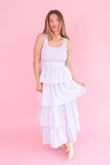 Effortless elegance meets playful charm in this maxi dress. The smocked bodice creates beautiful texture and a flattering fit, while adjustable str...