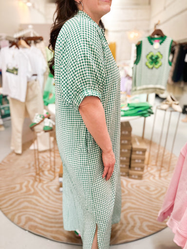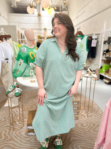 Embrace effortless spring style with the Southern Belle Gingham Dress, a versatile midi that transitions seamlessly from brunch to evening plans. T...