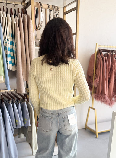 Effortlessly bridge your seasonal wardrobe with this Classic Button Cardigan in a luminous butter yellow. Perfect for layering as temperatures shif...