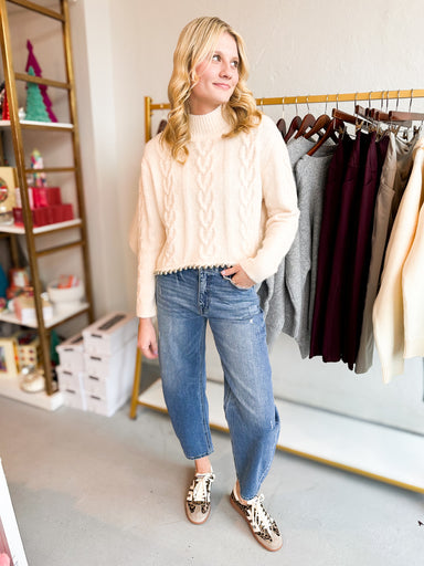 Wrap yourself in warmth with the Stripe Moment Sweater, a chunky knit masterpiece designed for ultimate comfort. This cozy essential features bold ...