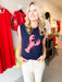 The Lobster Love Sweater Vest is a summer garment designed with a nautical theme, prominently featuring red, white, and blue colors. This color scheme not only enhances visual appeal but also evokes a classic maritime aesthetic, making it suitable for various casual settings while providing lightweight comfort for warm weather.