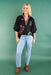 Make a statement with the Wild At Heart Top, where bold energy meets artistic flair. This striking piece features a rich black base that grounds the design, while vibrant pink trim adds an unexpected pop of personality. The colorful block print pattern brings movement and visual interest, perfect for those who refuse to blend in. Designed for the confident, creative spirit who embraces individuality with every outfit.