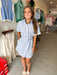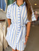 Effortless summer style meets timeless charm with this blue and white striped dress. Featuring a classic button-front design and short sleeves, it's perfect for warm-weather days. The adjustable waist tie lets you customize the fit for a flattering silhouette that works with your body. Throw it on and go—this versatile piece transitions seamlessly from casual outings to relaxed gatherings.