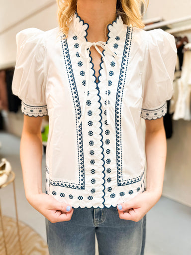 The Something Blue Top features a blue and white color scheme complemented by delicate embroidery details, enhancing its feminine appeal. Designed ...