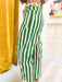 Elevate your casual wardrobe with these Easy Street Stripe Pants, featuring a cheerful green and white stripe pattern that brings instant personality to any outfit. Perfect for creating fun, festive looks that feel effortlessly put-together, these pants pair beautifully with solid tops or complementary prints. The relaxed fit ensures all-day comfort while the eye-catching stripes make a playful statement. Whether you're dressing up for a celebration or keeping things casual, these striped pants deliver style that stands out without trying too hard.