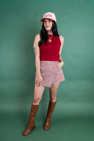 Contrast Stitch Satin Mini Skirt