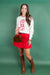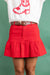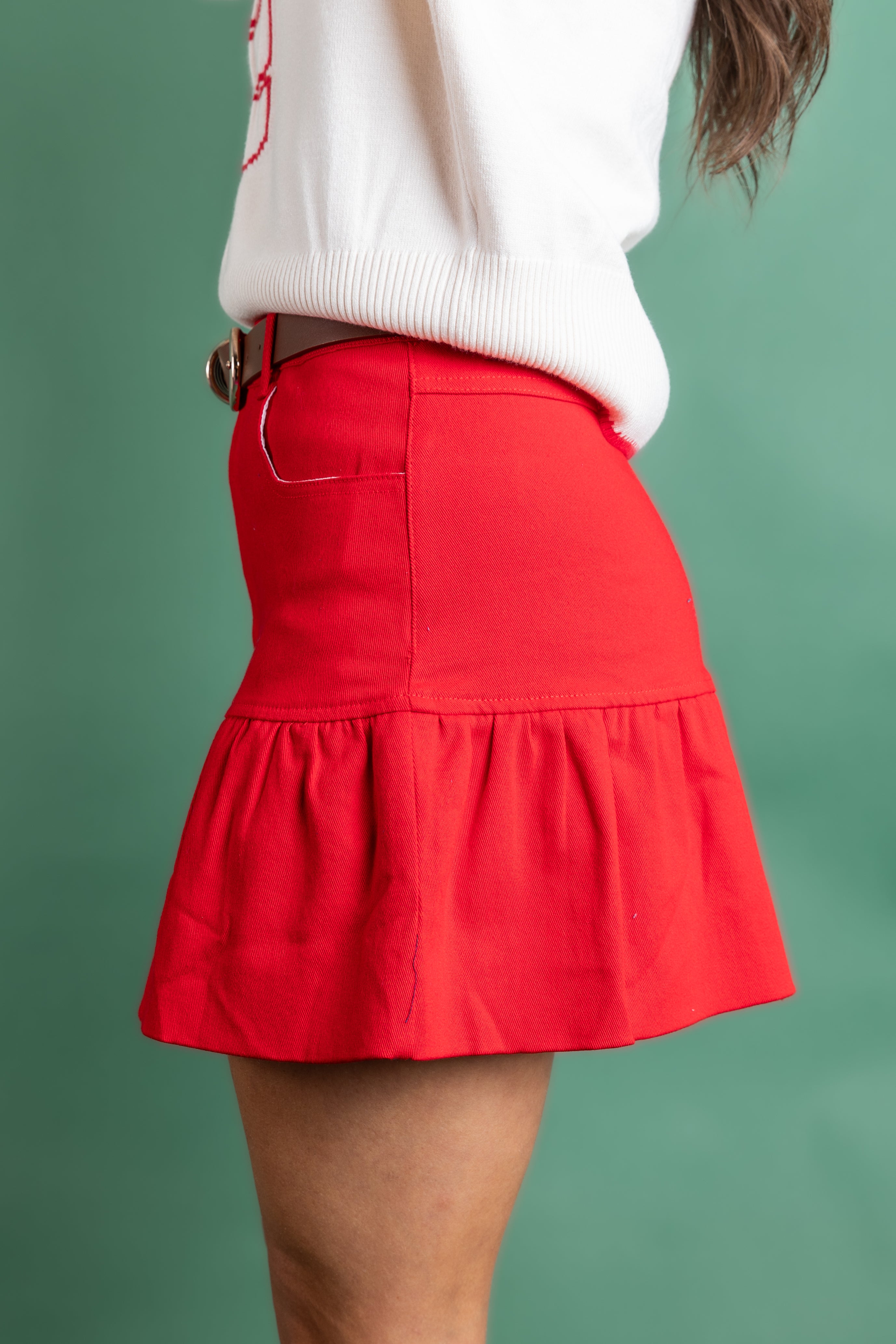 Add a splash of fun to your wardrobe with this Red Denim Ruffle Skirt. Its playful ruffles bring movement and charm, while the versatile denim fabric pairs effortlessly with any top. Perfect for casual days or dressier occasions, this skirt lets you express your style with confidence and ease.