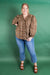 Embrace effortless style with this plus size rustic floral top, featuring a lightweight design perfect for transitional weather. Its warm brown and ivory floral pattern adds a touch of natural elegance, making it versatile for layering or wearing on its own. Comfortable and flattering, this top is your go-to piece for a polished, yet relaxed look all season long.