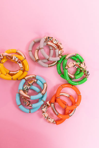 The Zoe Gray Bracelet combines style and comfort with its stretchy design, making it effortless to wear all day. Its fun, versatile look adds a pla...