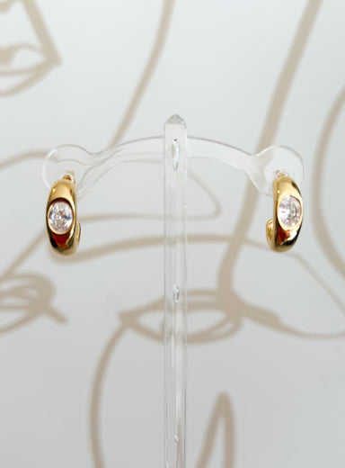 Make a bold statement with the Doree Oval CZ Stud—a sophisticated choice for those who appreciate timeless elegance. These stunning gold studs feat...