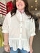 Elevate your wardrobe with this Plus Size Southern Charm Blouse, featuring delicate white ruffles that add instant sophistication to any outfit. The versatile design transitions seamlessly from casual weekday wear to polished weekend looks, making it an essential piece for your closet. Soft, flattering ruffles frame the neckline and sleeves, creating dimension and movement that complements all body types. Perfect for layering or wearing solo, this blouse pairs beautifully with jeans, skirts, or trousers. Embrace timeless elegance with a piece that works as hard as you do.