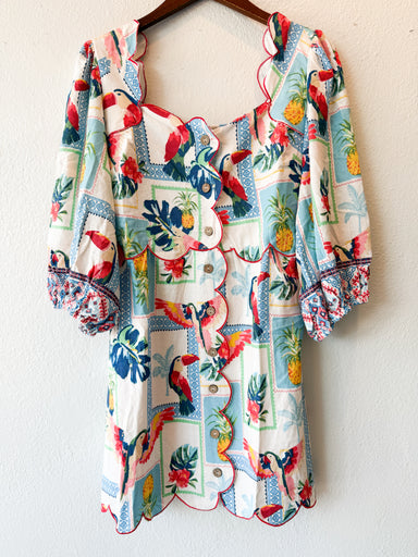 Returnable for STORE CREDIT only! Get ready to turn heads this Mardi Gras season in the Queen of Sparkles Seafood Newspaper! This playful button-fr...