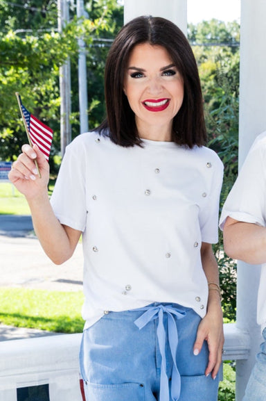 Elevate your everyday look with the Studded In Style Tee, featuring sleek silver studs that add a touch of edge to a classic design. This versatile...