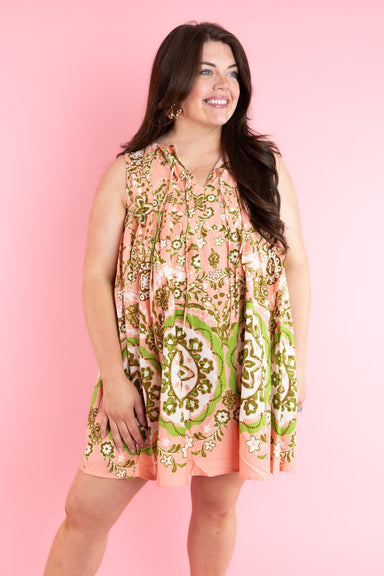 The Adeline Midi Dress brings timeless elegance to your everyday wardrobe with its stunning block print design. This versatile piece transitions ef...