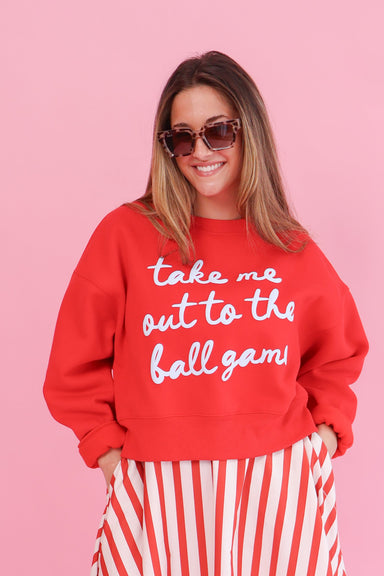 Cozy up in classic baseball style with this charming sweatshirt featuring baby blue and red colorways. Perfect for game day or casual everyday wear...