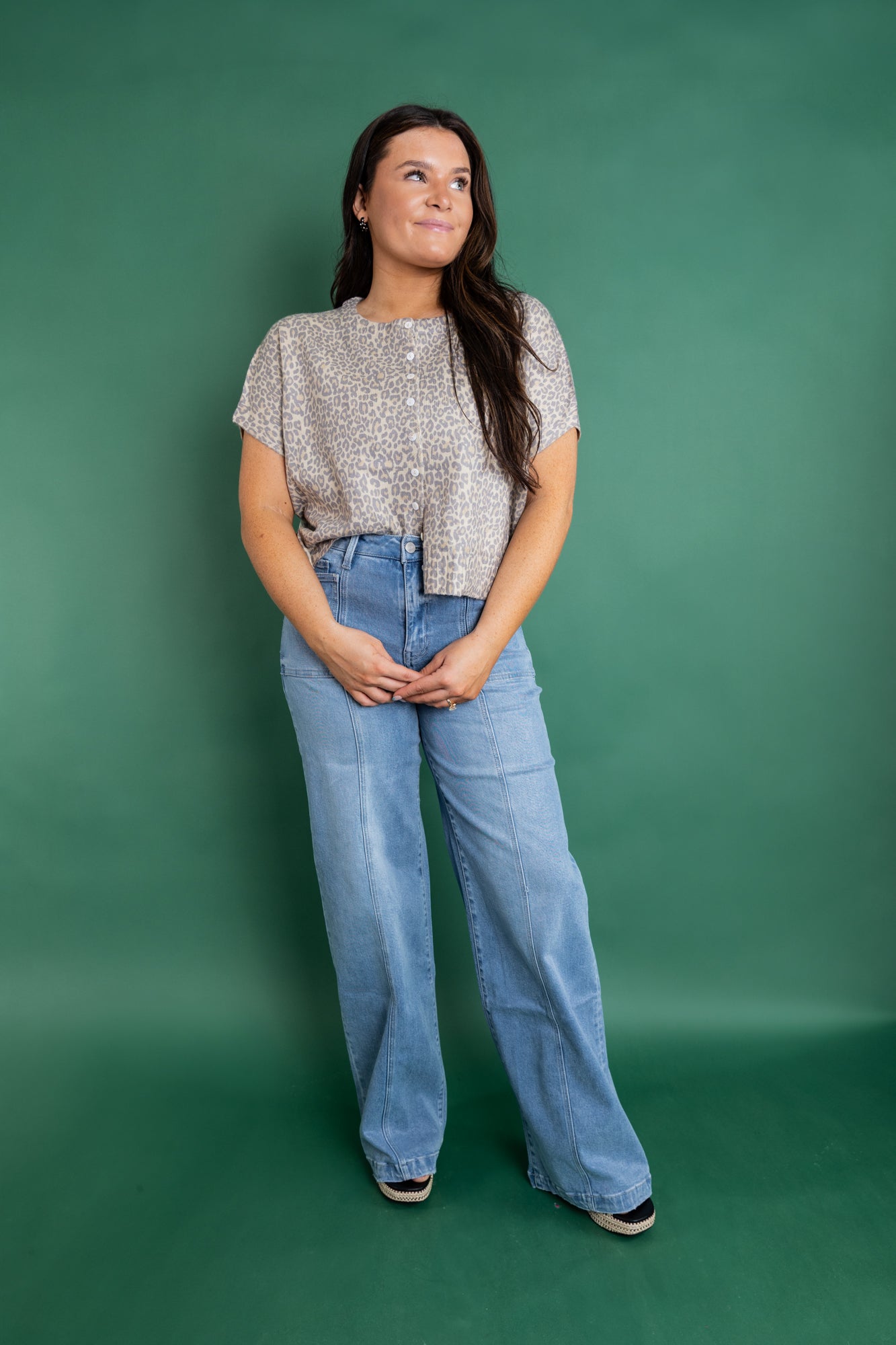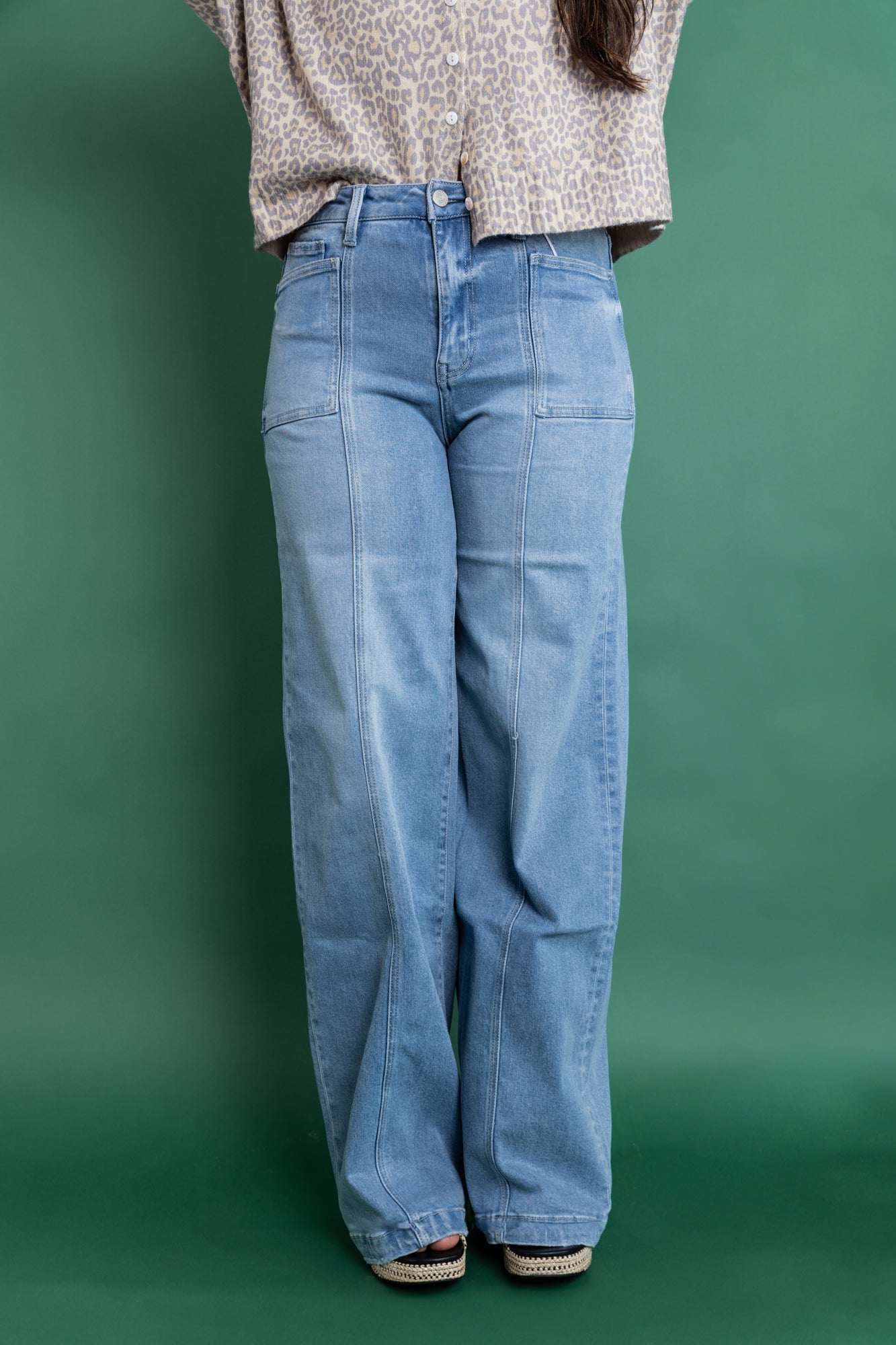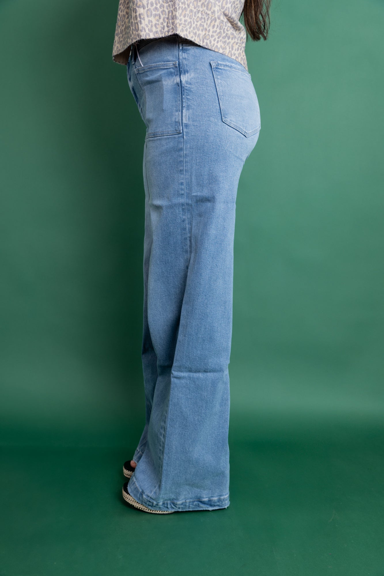 These High Rise Extreme Wide jeans offer a flattering silhouette with their high-rise fit that enhances your natural shape. The medium wash provides versatile styling options, perfect for dressing up or down. Designed for comfort and style, they are an essential addition to any wardrobe seeking both trend and timeless appeal.
