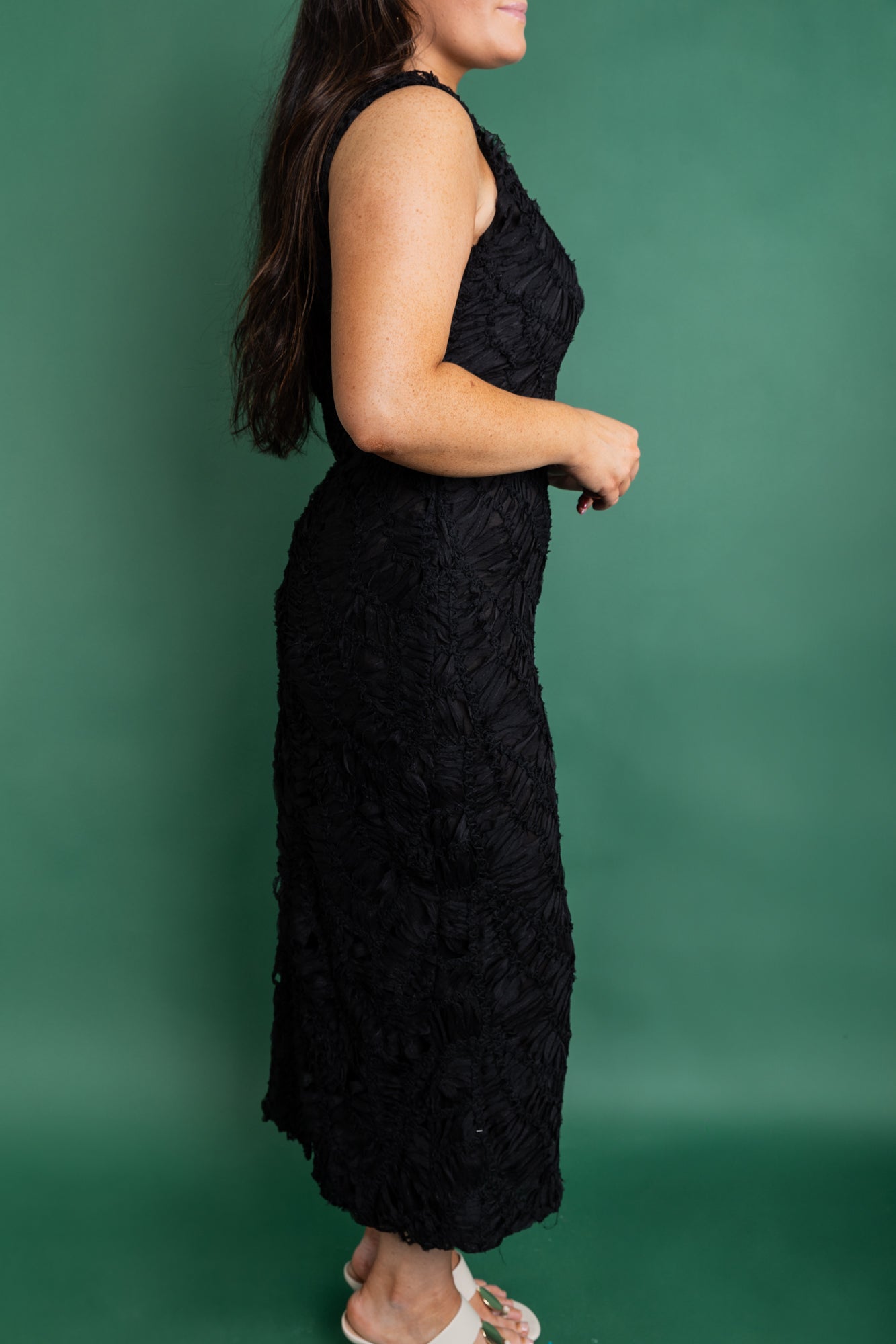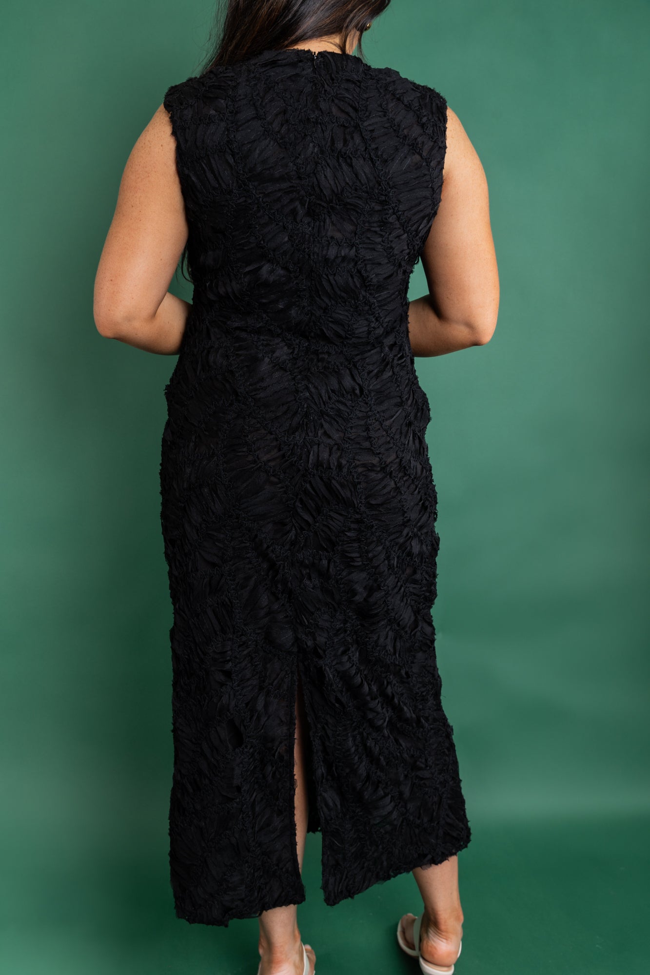 Elevate your evening with the Noir Twist Midi Dress, designed to flatter every silhouette with its elegant twist detail and timeless cut. Perfect for black-tie events, this dress combines classic sophistication with a modern edge, ensuring you stand out with effortless grace. Make a lasting impression at your next special occasion.